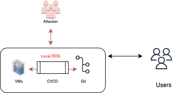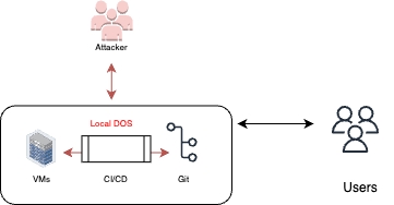 Once the attacker is running on the CI pipelines, the attacker can perform a denial service attack from said pipelines to customers by shutting down agents, rebooting, or by overloading the VMs.