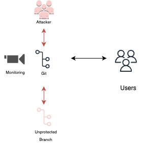 Branch protection tools allow an organization to configure steps before a PR/commit is approved into a branch. Once an attacker has admin permissions, they may change these configurations and introduce code into the branch without any user intervention.