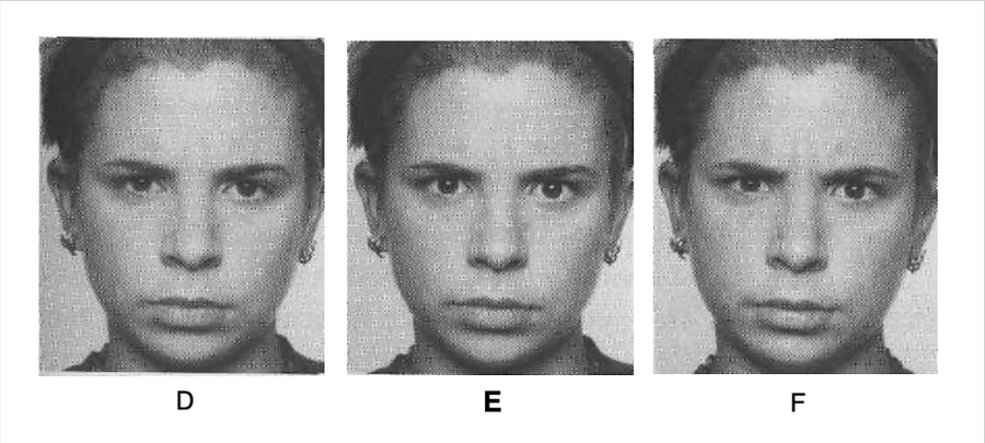 Highly controlled or very slight anger (annoyance)—or determination. You can’t be certain when the only clue is a slight pressing and narrowing of the lips. You don’t want to miss this clue, even though it is ambiguous, because if you spotted it in real life, you probably would be able to figure out whether it is an anger sign or determination based on when it was shown or what was being said by you or that person. This can be one of the earliest signs of anger, alerting you before matters get irreversible; sometimes this sign occurs before the other person recognizes that he or she is becoming angry.