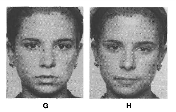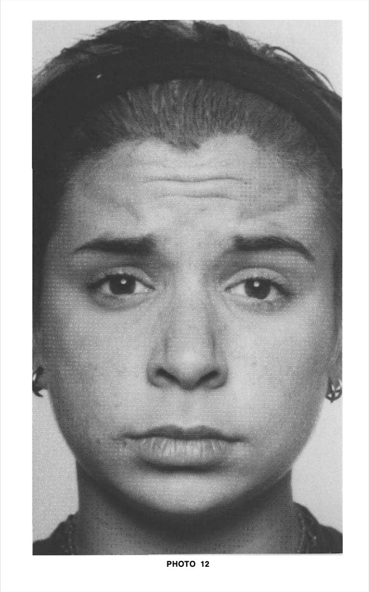 Slight sadness, again, this time expressed in the lips with the slight pulling down of the lip corners. Compare the position of the lips in this picture with the position in photo 1, in which the lips are relaxed.