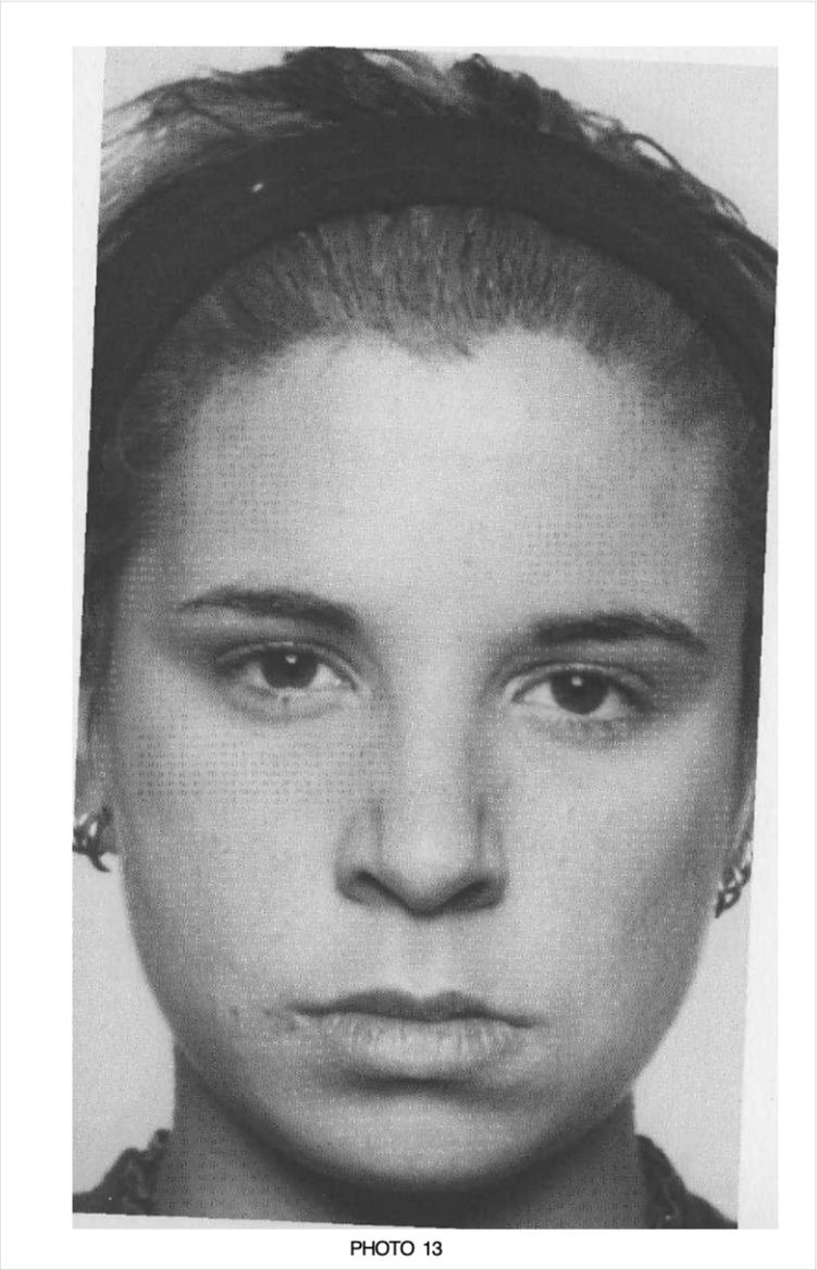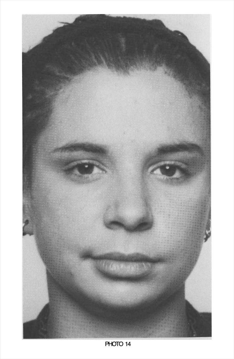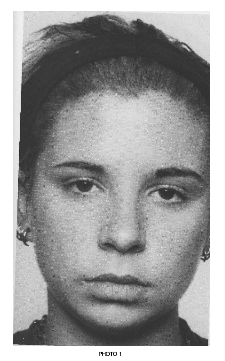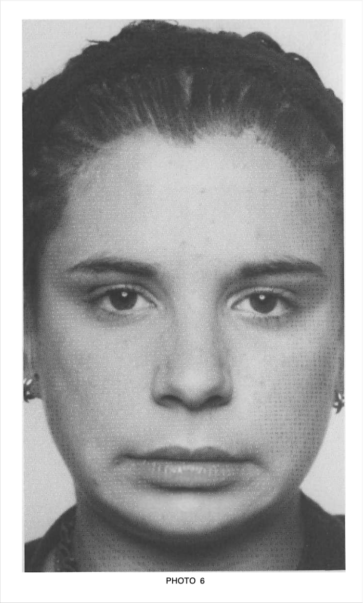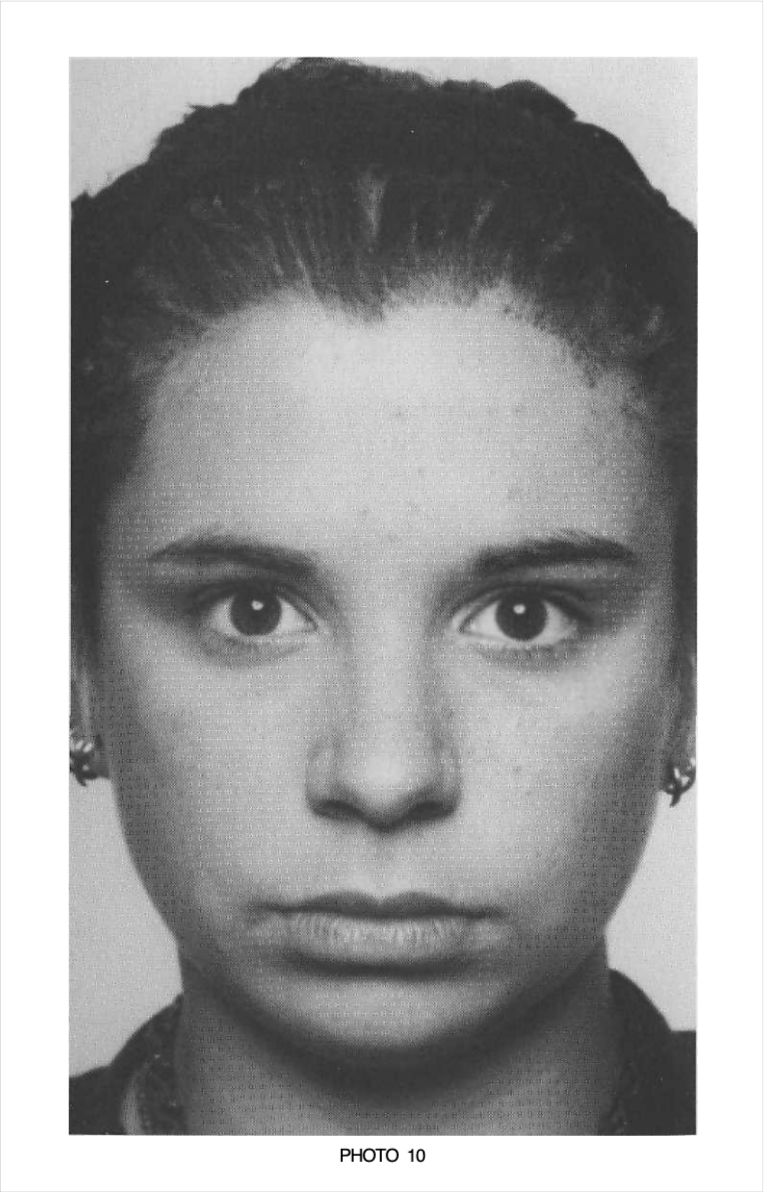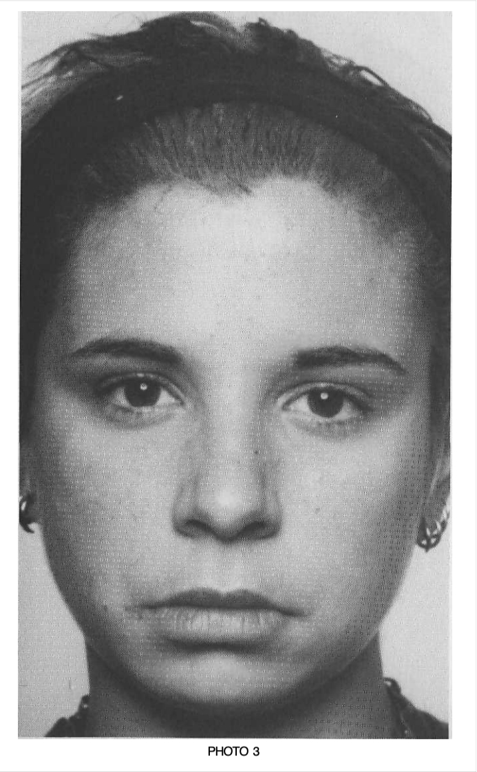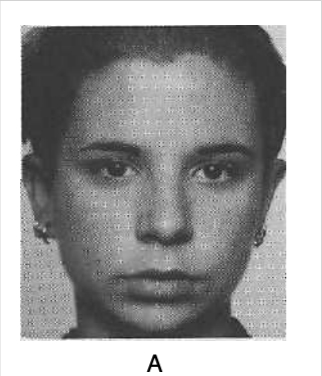 Slight sadness. If you thought of any related word, such as “blue” or “dejected” or “depressed,” that would also be correct. The expression is shown in the drooping upper eyelids. Tired or sleepy could also be correct, not because it is a related word but because the drooping eyelids she shows can occur in tiredness as well as sadness; when the upper eyelids begin to droop in tiredness, you might, however, see the eyes lose their focus, and an occasional yawn or shaking of the head.