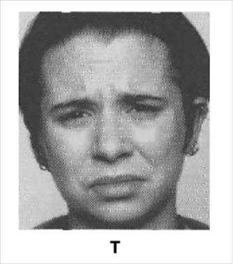 Slight or highly controlled fear. The most common mistake is to interpret this as a sign of disgust. The clue to fear is the slightly stretched lips. Sometimes when a person is describing or thinking about a time when he or she was afraid, but not actually feeling it in the moment, the person will show this subtle fear expression.